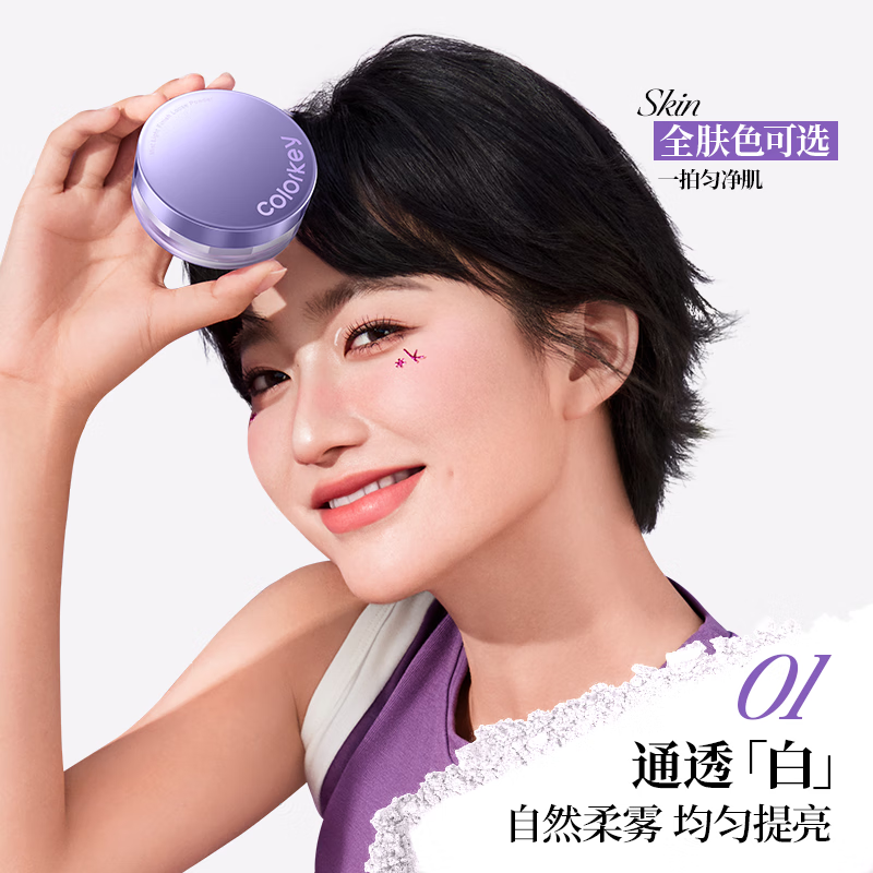 Color Key珂拉琪雾光锁妆散粉清透持妆修黄提亮送女友生日礼物01通透白