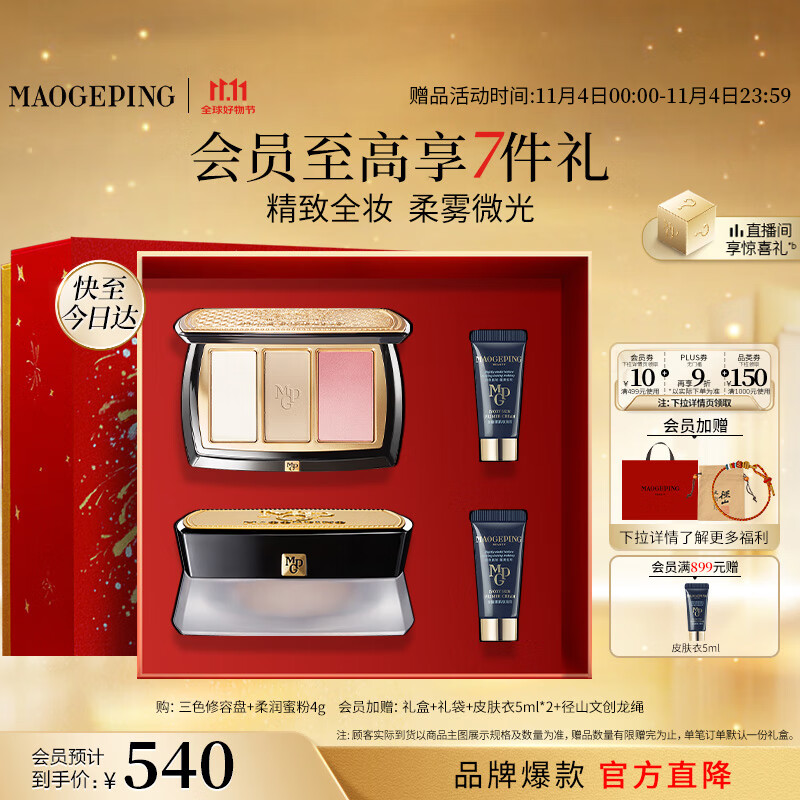毛戈平三色修容盘散粉定妆阴影高光腮红修容彩妆礼盒生日礼物送女友
