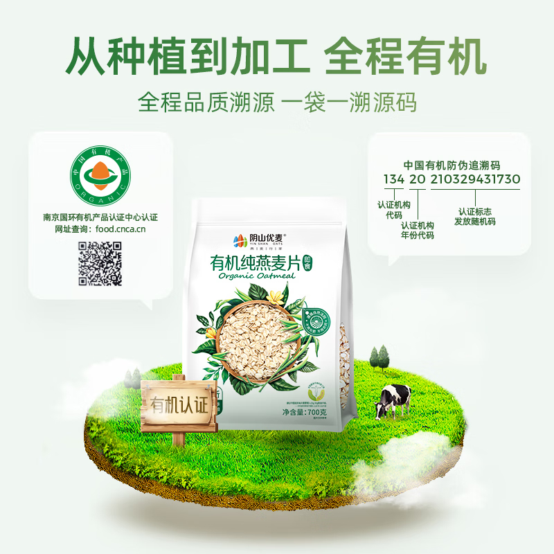 阴山优麦 有机纯燕麦片700克(内含20小包)