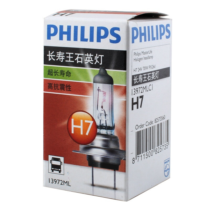 飞利浦(PHILIPS)长寿王H7-13972汽车灯泡24V卡车货车专用石英灯 单支装