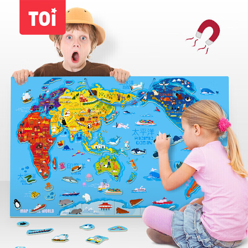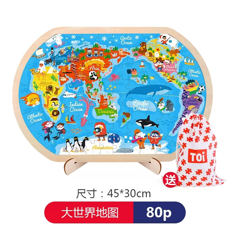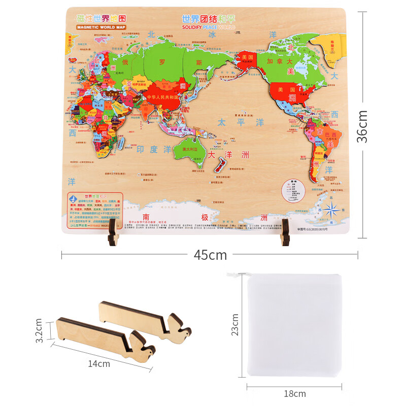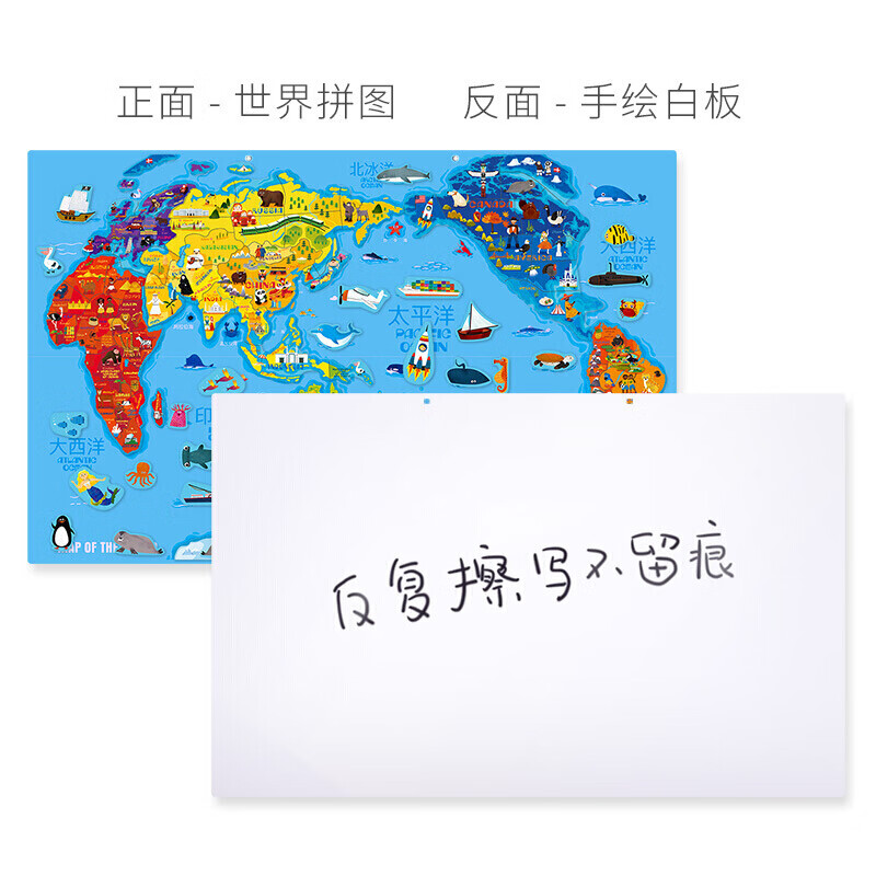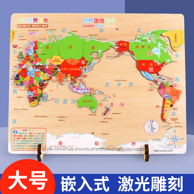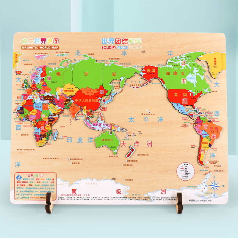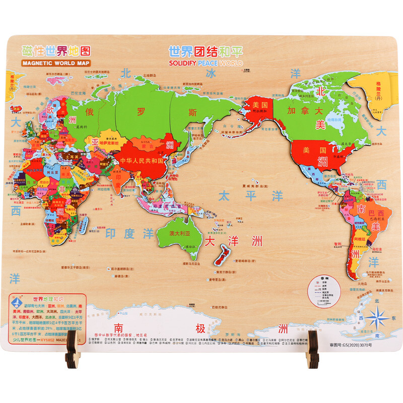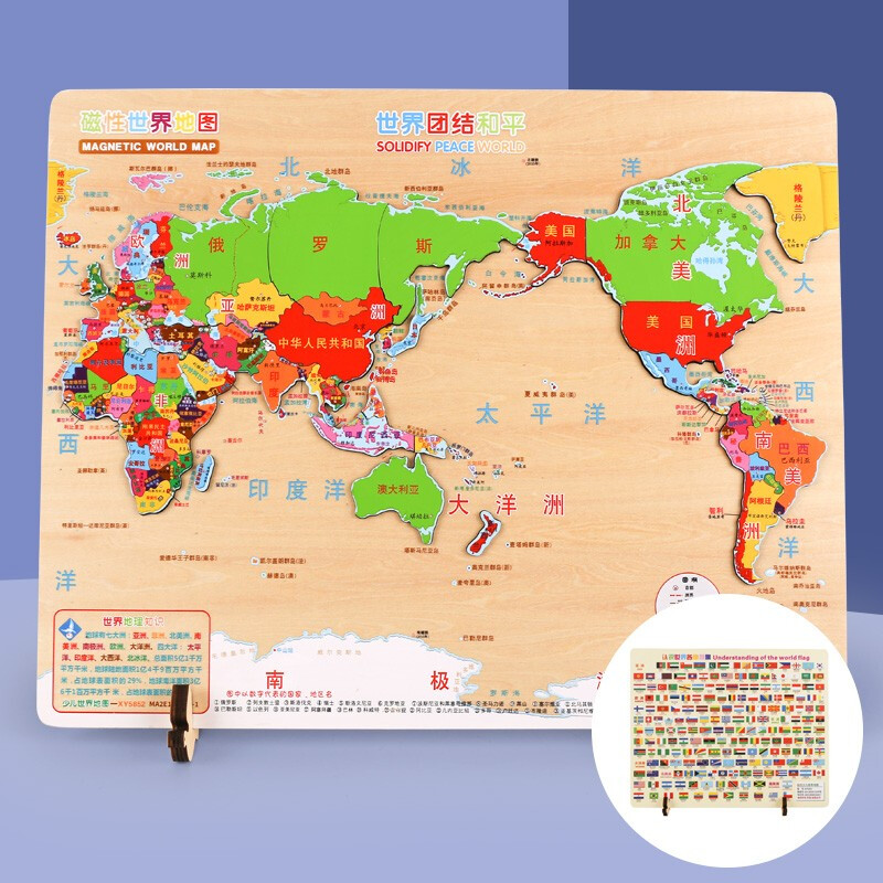 福孩儿特大号磁性世界地图拼图木制早教益智玩具男女孩儿童小学生日礼物