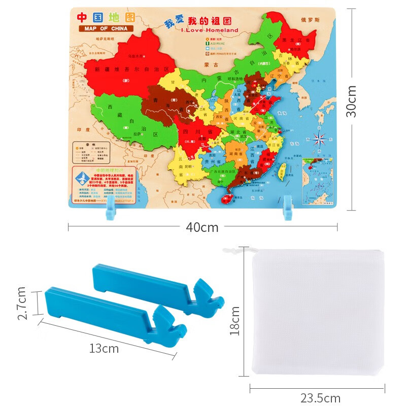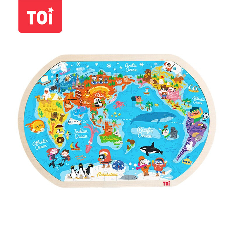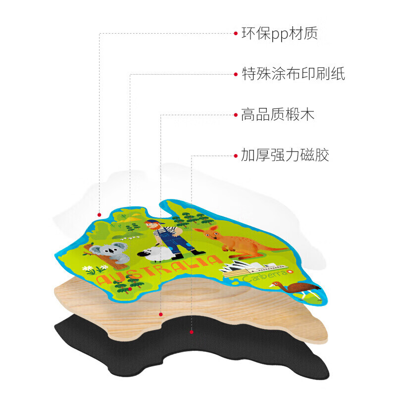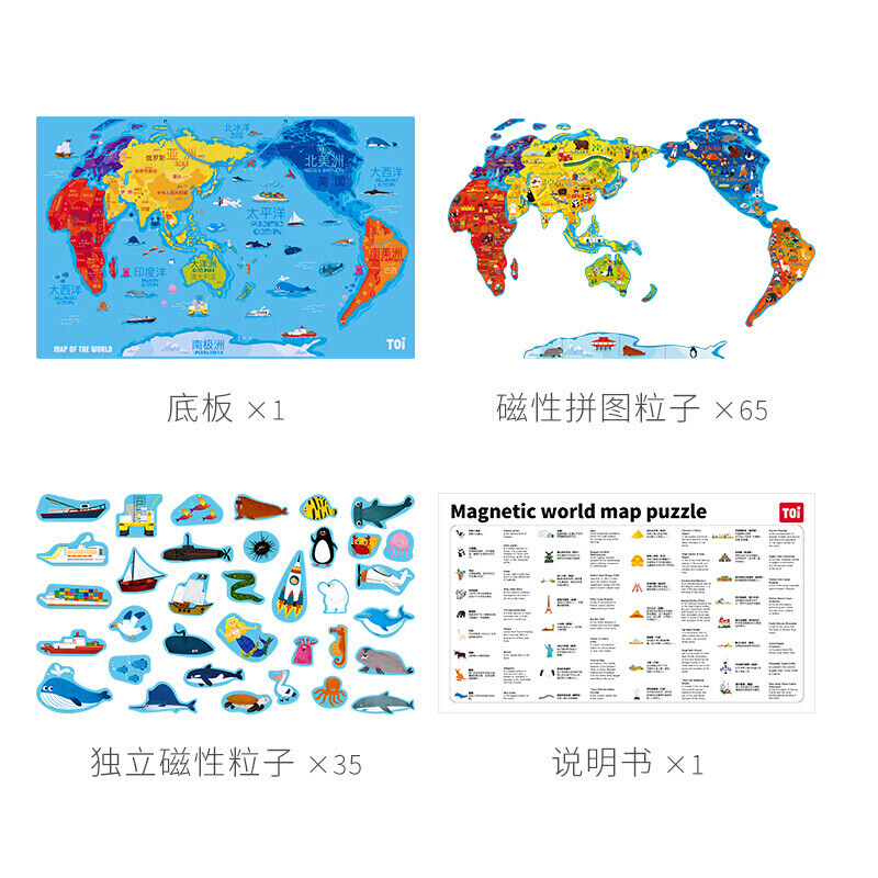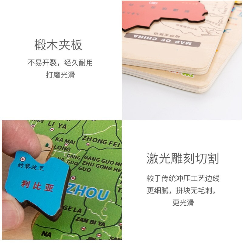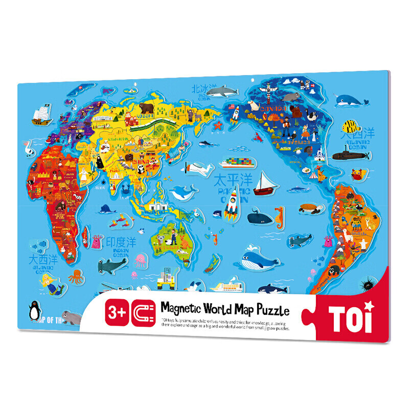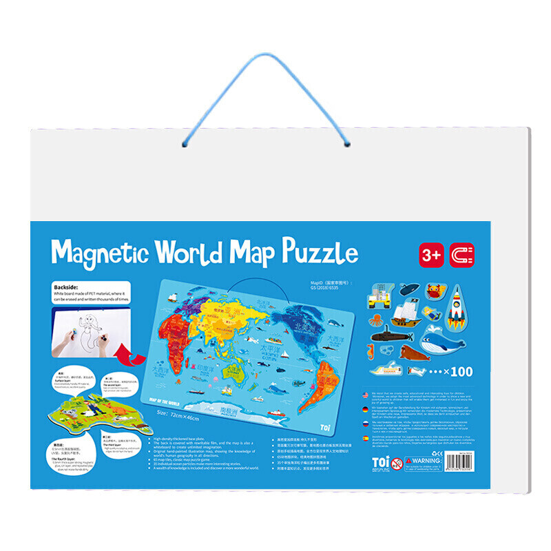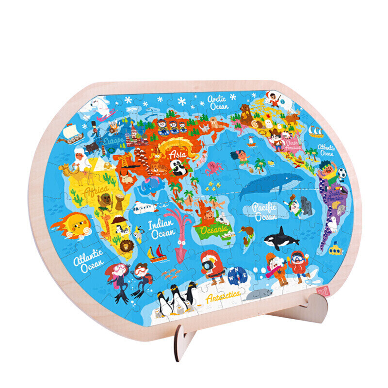 福孩儿特大号磁性世界地图拼图木制早教益智玩具男女孩儿童小学生日礼物
