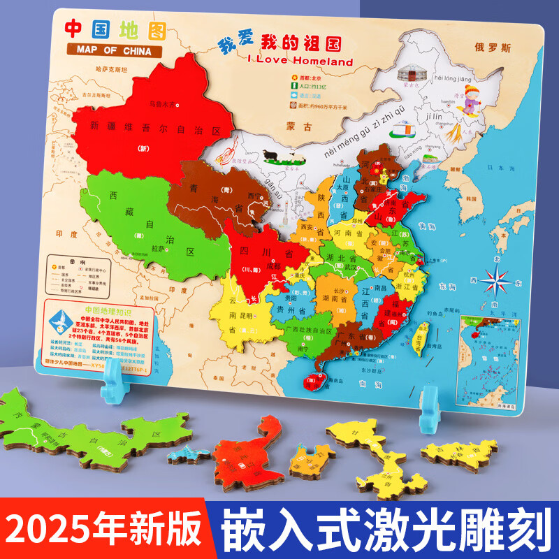 福孩儿2025新版磁力中国地图拼图儿童益智玩具3-10岁宝宝男女孩生日礼物