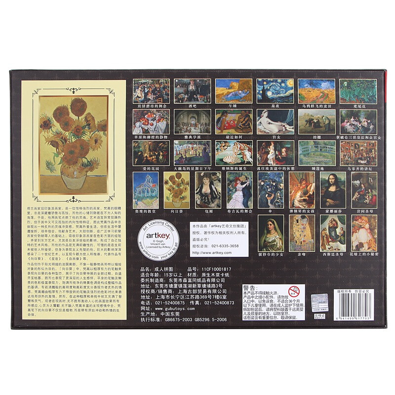 古部成人拼图1000片向日葵梵高成年玩具高难度拼图包装随机家居装饰