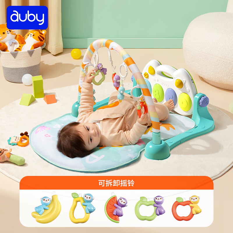 澳贝(auby)新生儿礼盒婴幼儿童玩具好动小猴健身架宝宝脚踏踩钢琴满月礼物