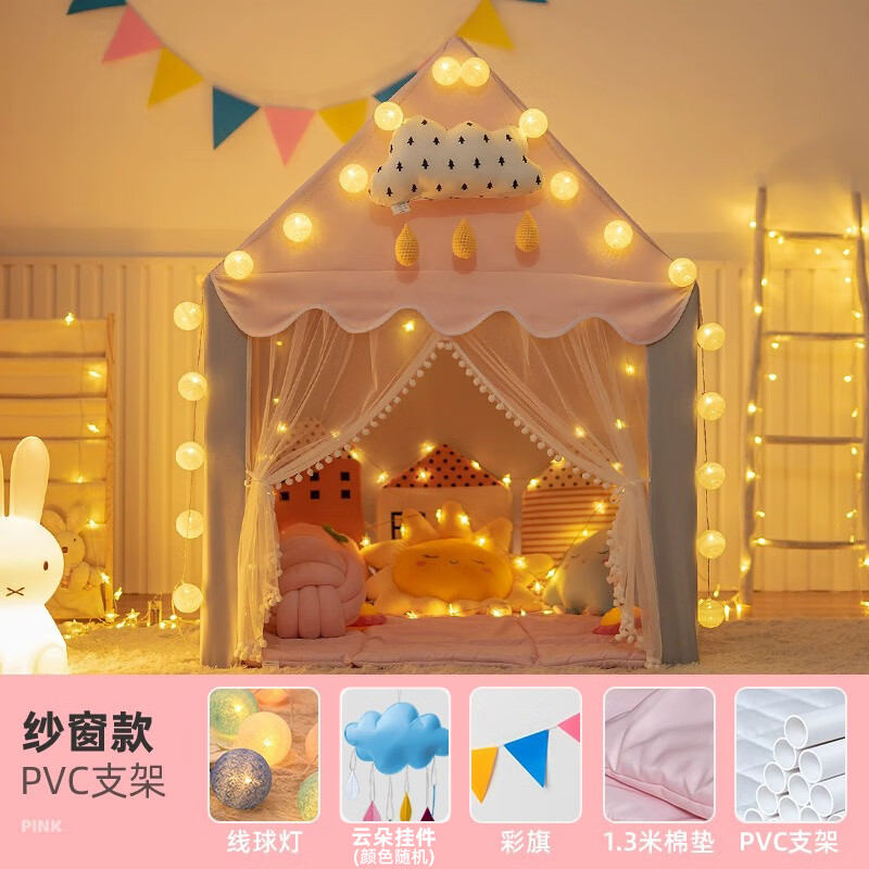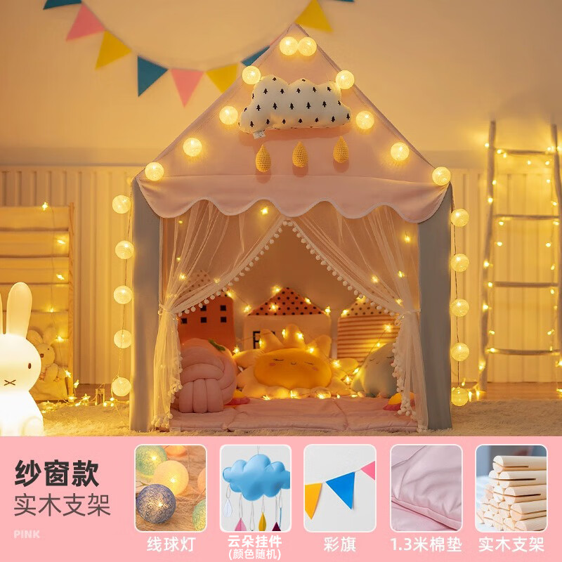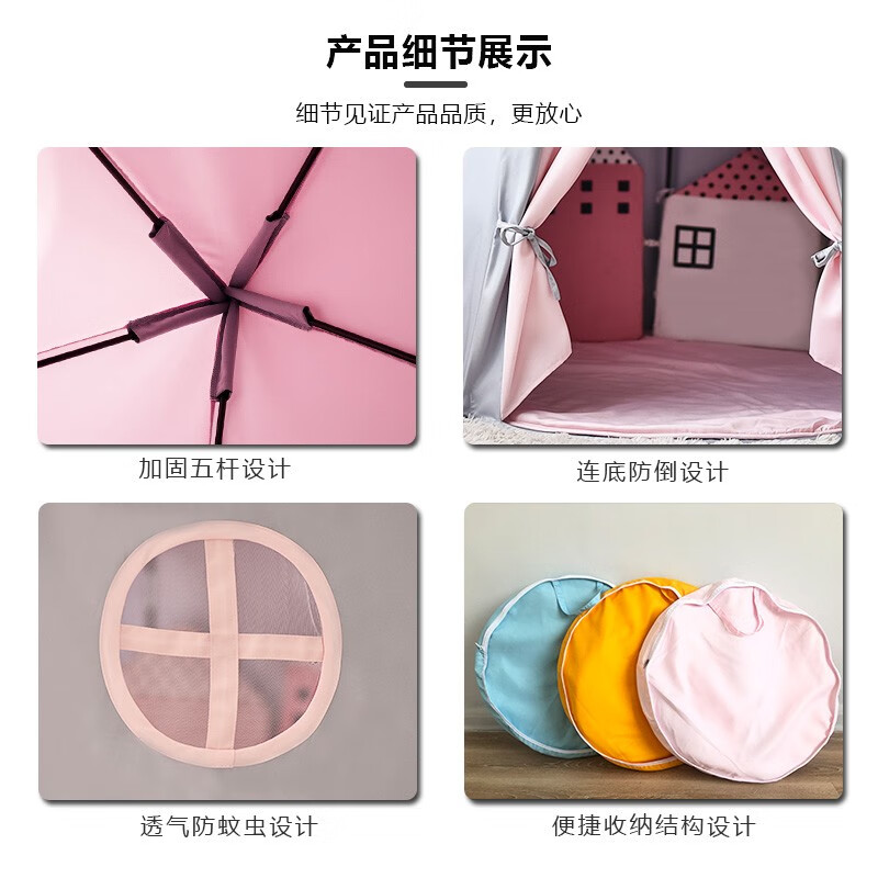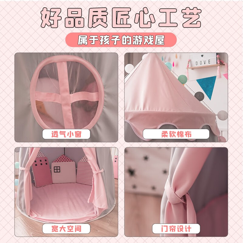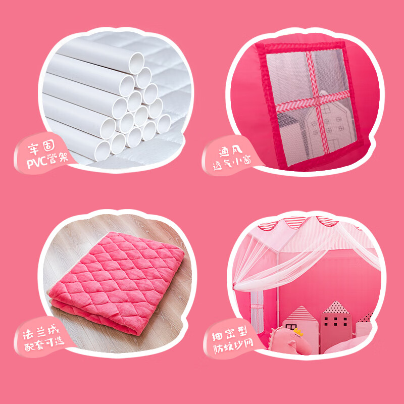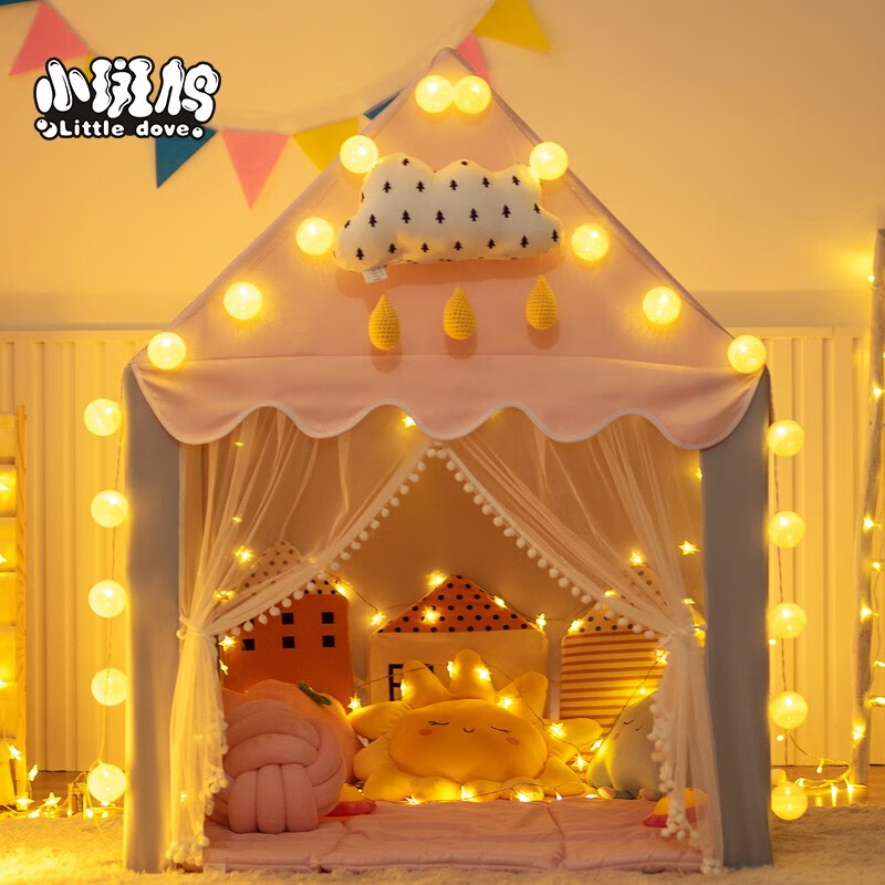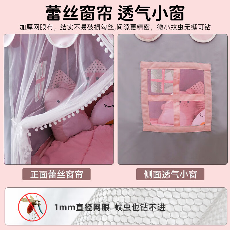 小斑鸠(little dove)儿童帐篷室内游戏屋/女孩公主房城堡 粉色升级款(含棉垫+冰丝席)