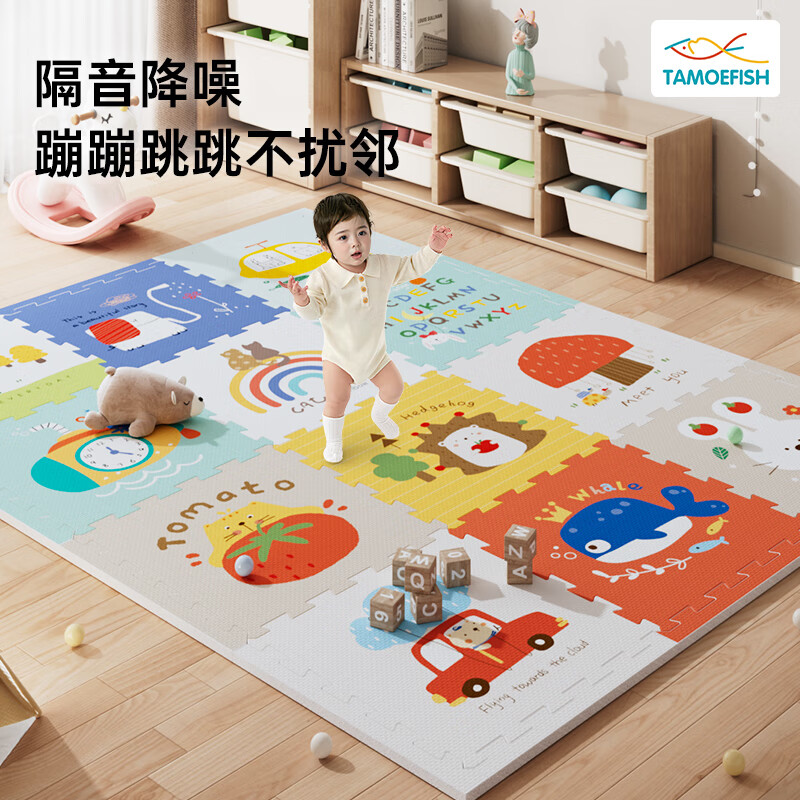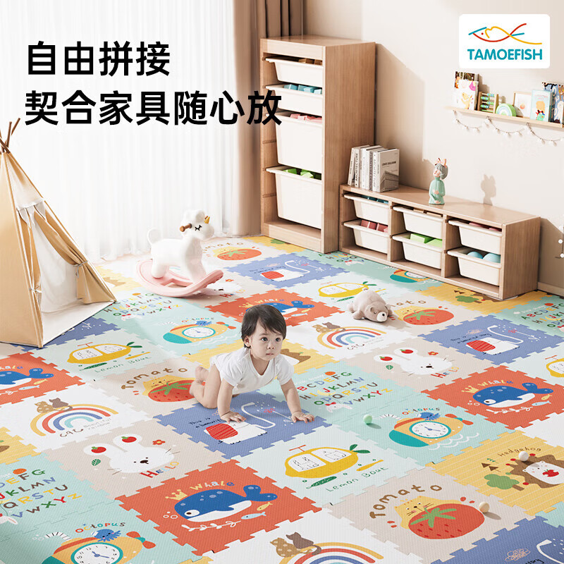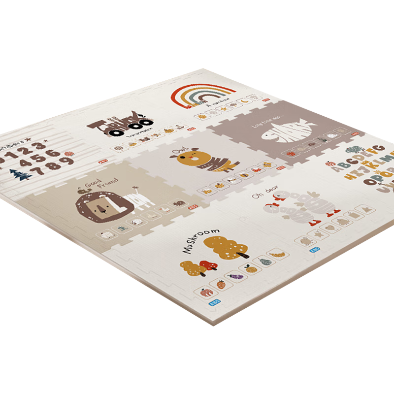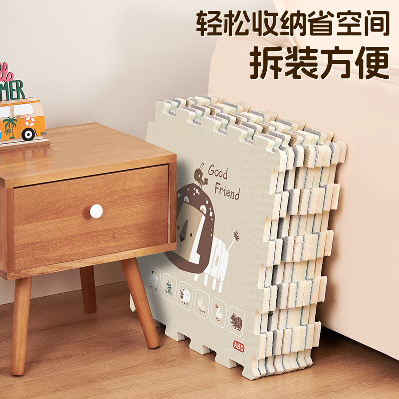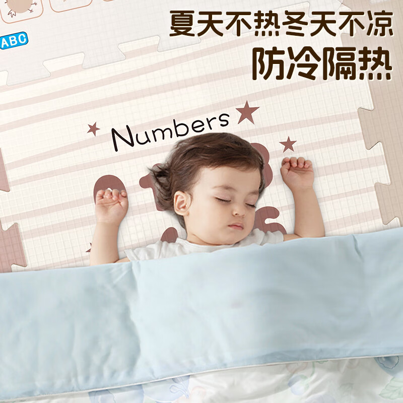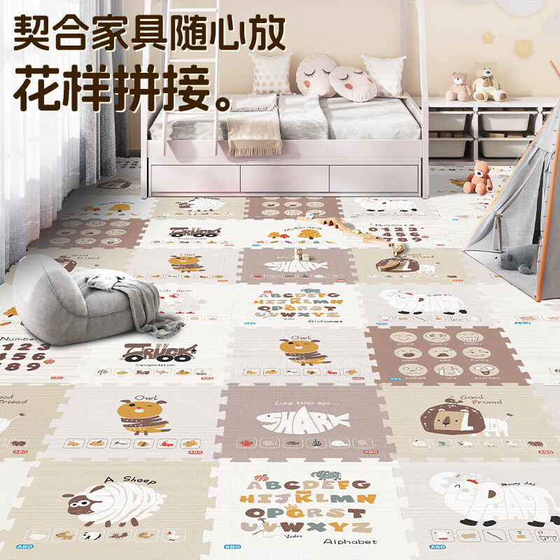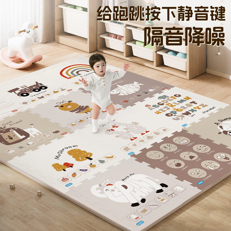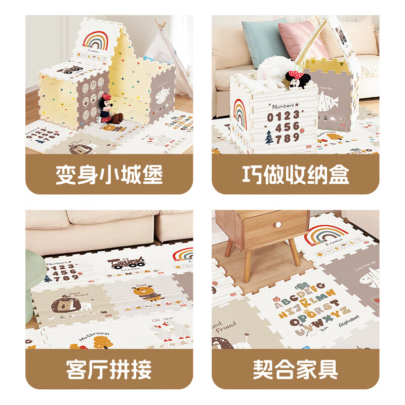 乐缔宝宝爬行垫9片拼接爬爬垫泡沫地垫30*30CM加厚1CM米白灰