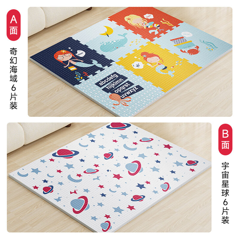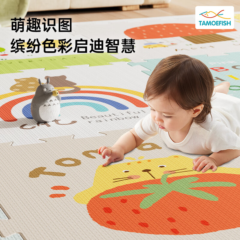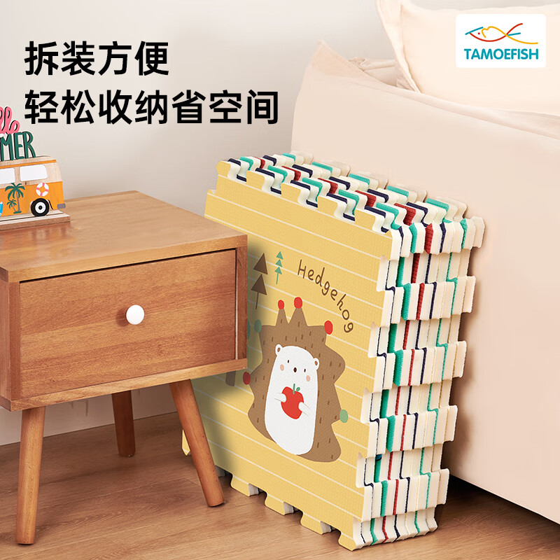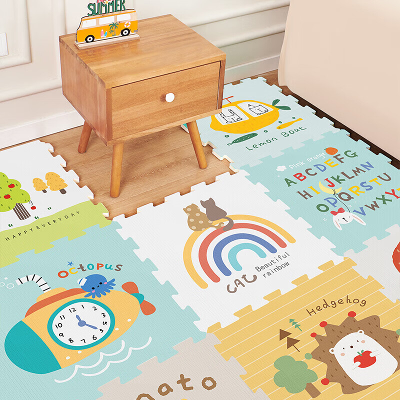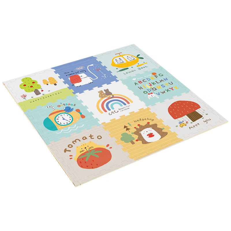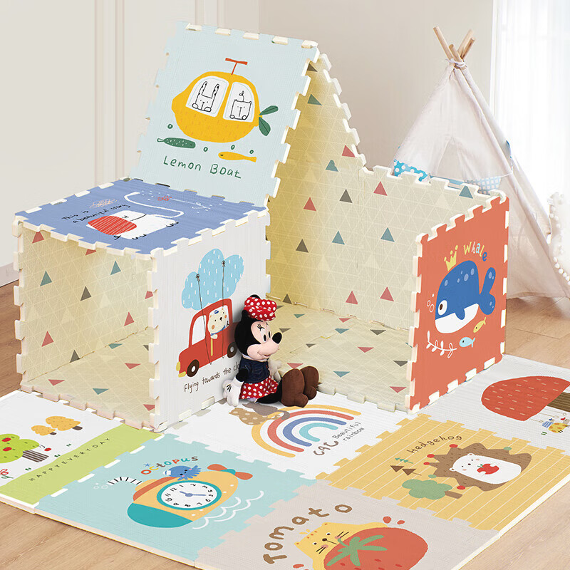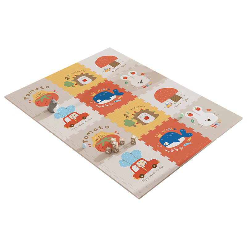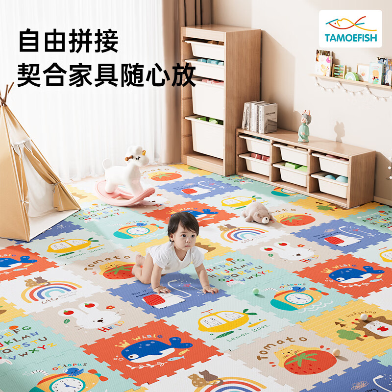 乐缔宝宝爬行垫9片拼接爬爬垫泡沫地垫30*30CM加厚1CM米白灰