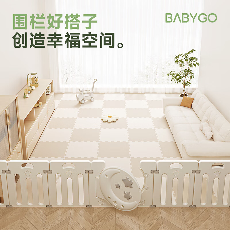 BG-BABYGO小熊的家游戏围栏室内地上婴儿爬爬垫护栏宝宝游乐园可折叠 12+2