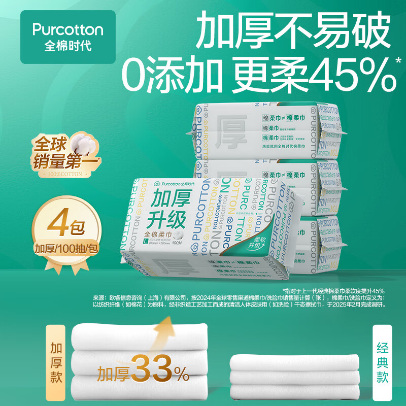 全棉时代【孙颖莎同款】洗脸巾 100片/包*6100%棉柔毛巾喜庆婚庆20*20CM