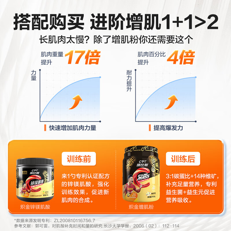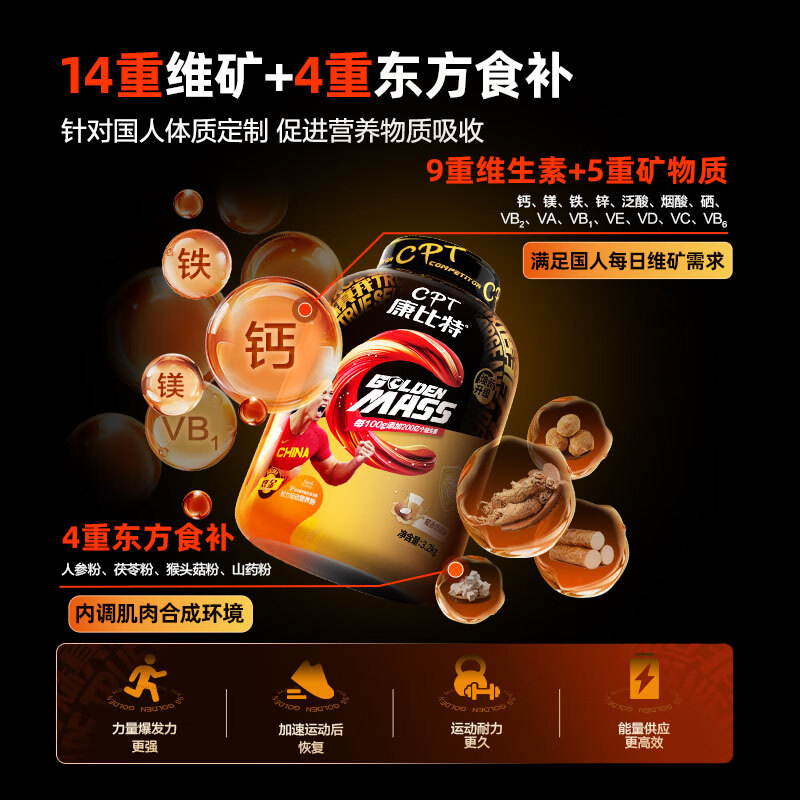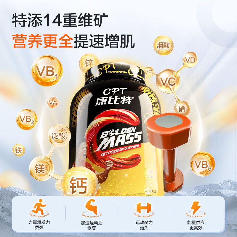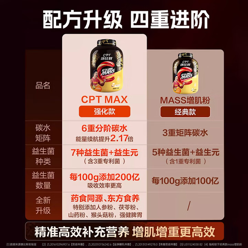 康比特(CPT)益生菌增肌粉瘦人增肌增重 MASS健身乳清蛋白粉 椰香奶茶味 7磅