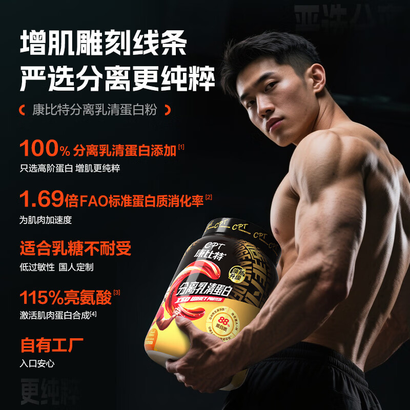 康比特乳清蛋白粉增肌粉运动健身人士低脂塑形增肌蛋白质粉2270g 香草味