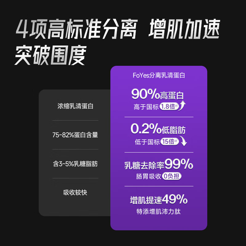 FoYes迅增增肌粉瘦人健身增肌增重乳清蛋白粉益生菌增肌粉5磅椰奶味