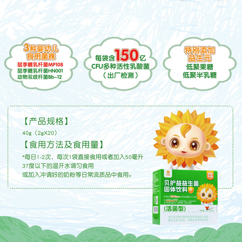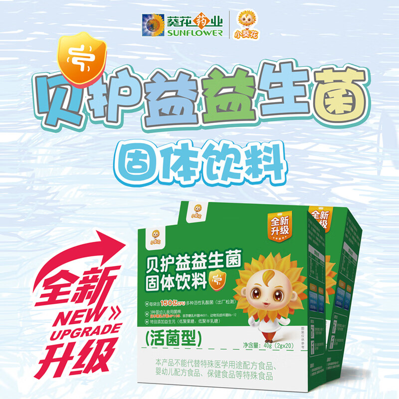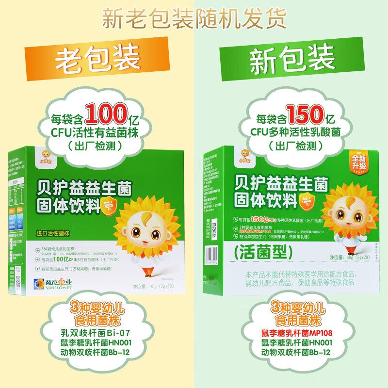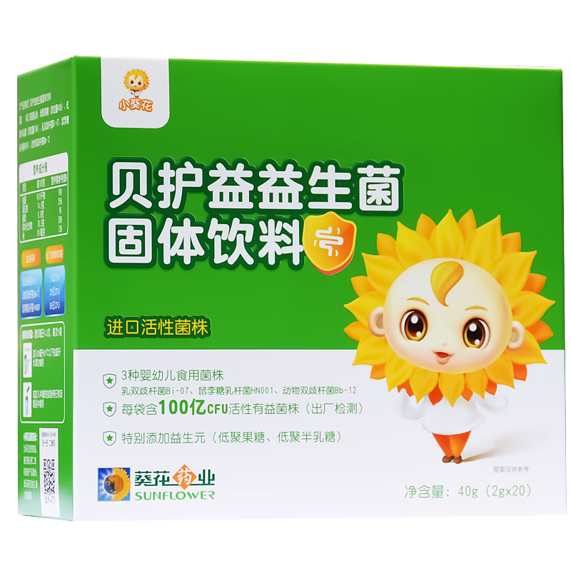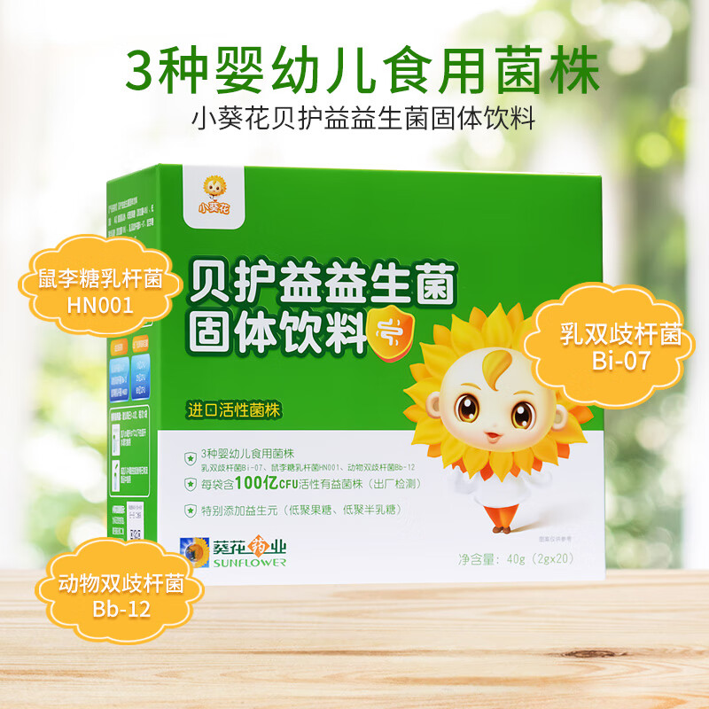 小葵花益生菌 3种婴幼儿食用菌株 Bb-12 鼠李糖乳杆菌 每袋100亿CFU活性有益菌株益生菌(新老包装随机发货)