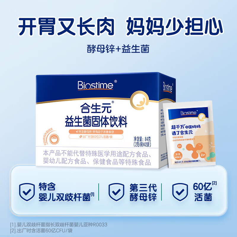 合生元(BIOSTIME)酵母锌开胃益生菌 多开味同款 促长肉补营养锌42袋