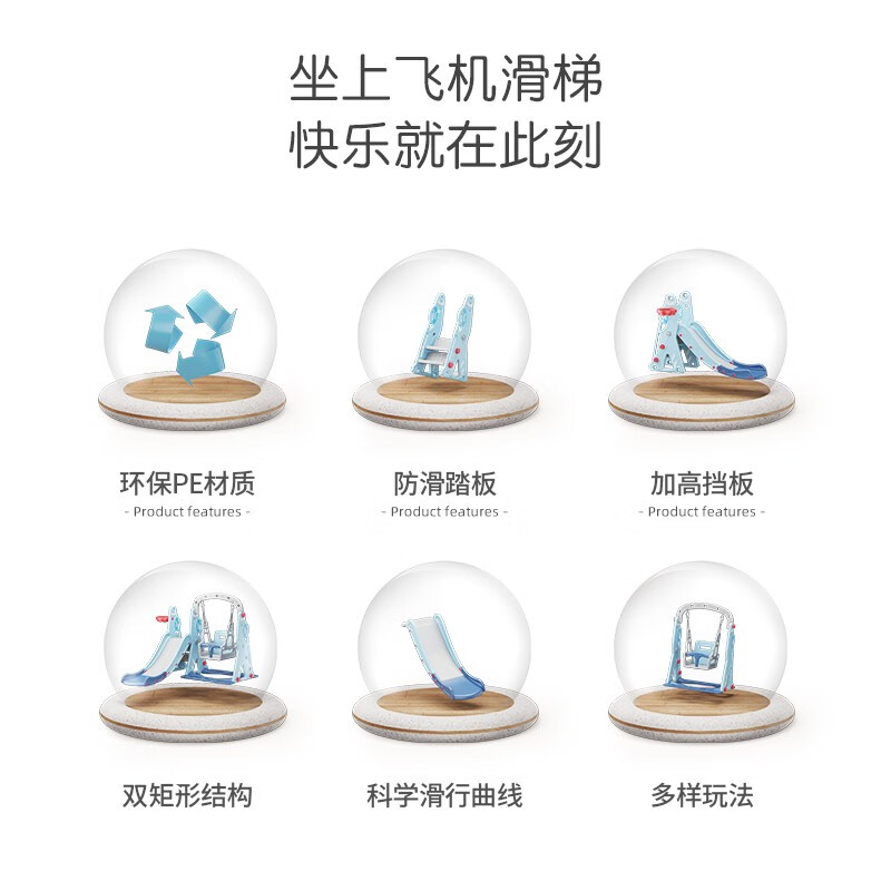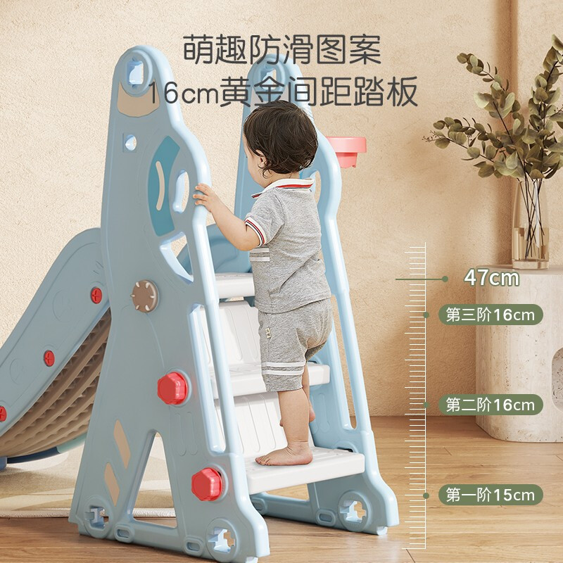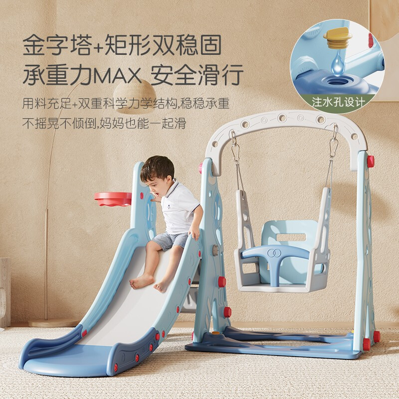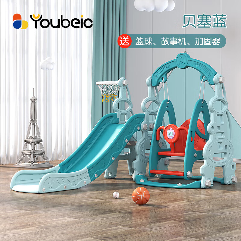 哈比树 儿童滑滑梯秋千篮球框套装家用室内游乐场多功能宝宝玩具晴天蓝