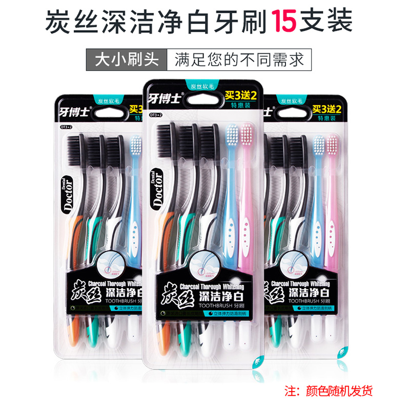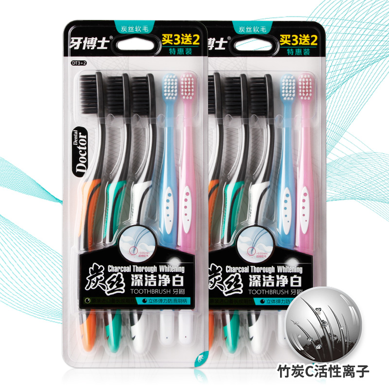 商品名称:牙博士炭丝深洁净白牙刷 DT3+2 5支/盒家庭超值装软毛