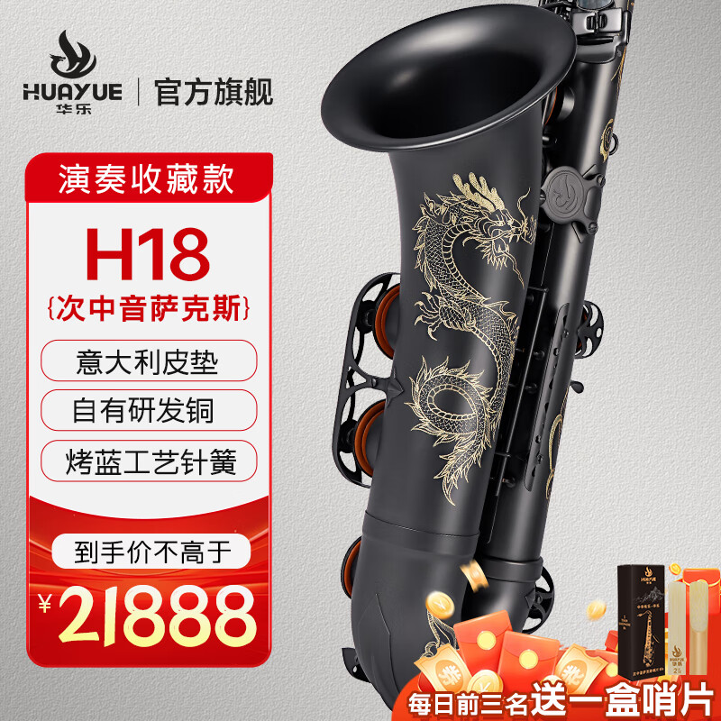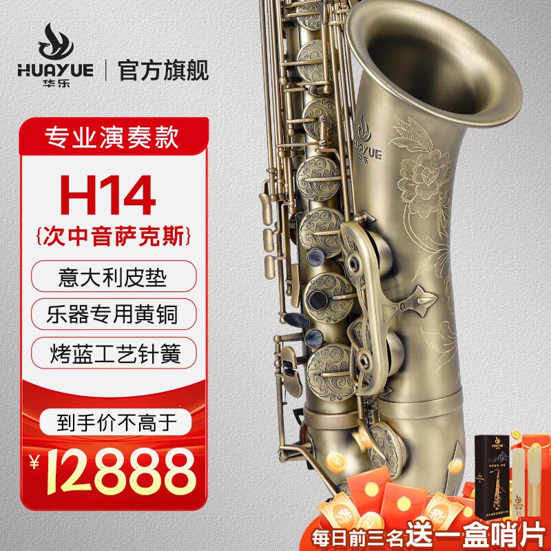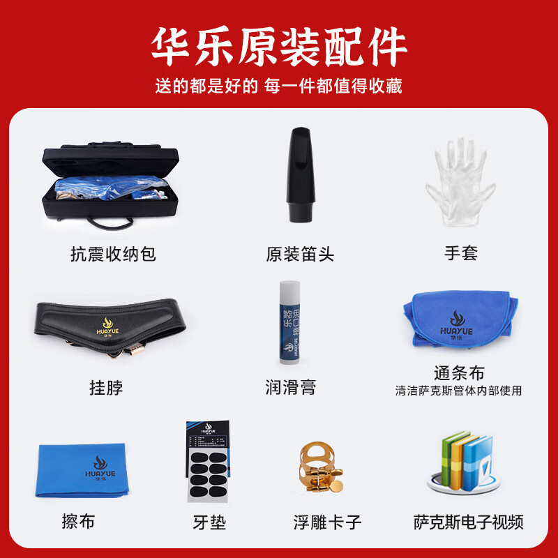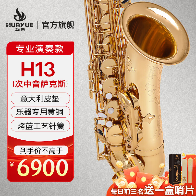 商品名称:华乐(HUAYUE)萨克斯H-13次中音降B调初学考级演奏款萨克斯进口材质 H-13 合金黄铜