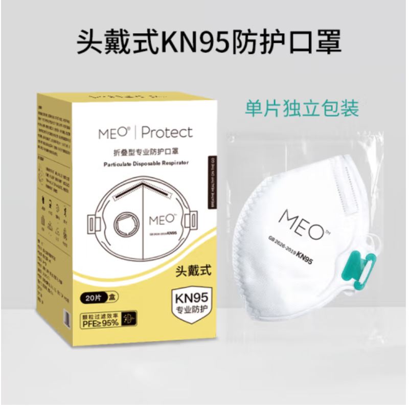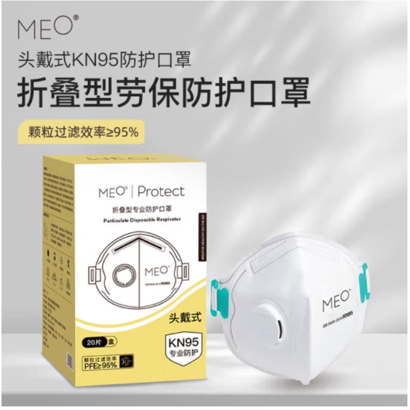 商品名称:米欧MEO KN95 防护口罩一次性成人口罩 折叠型专业防护口罩(带阀头戴式)20只/盒