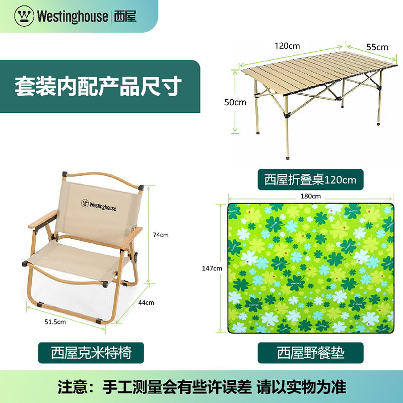 商品名称:西屋Westinghouse西屋户外尊享套装Max (大号蛋卷折叠桌*1+克米特椅*4+野餐垫*1