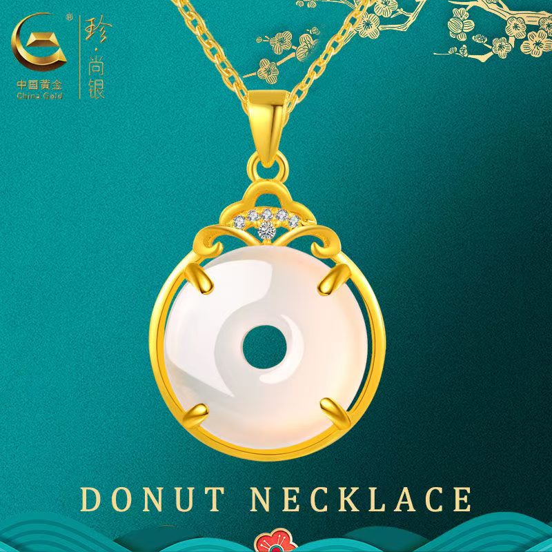 商品名称:中国黄金珍尚银天然高冰冰透玉髓顺安mini平安扣项链气质锁骨链饰品SK15312