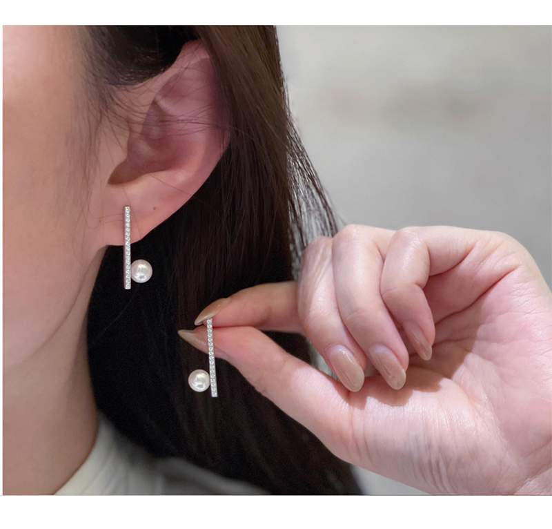 商品名称:慕梵&几何线条长款锆石简约淡水珍珠耳钉