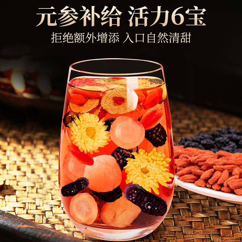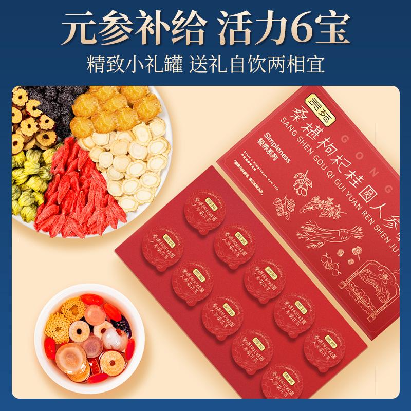 商品名称:贡苑 高端黑桑椹桂圆枸杞人参菊花茶 15g*10罐