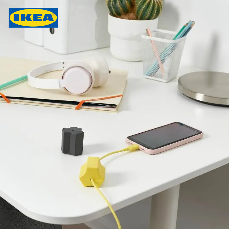 宜家 IKEA HAVSKAL哈斯阔 USB固定器收纳盒 黑色/黄色 2个*2份