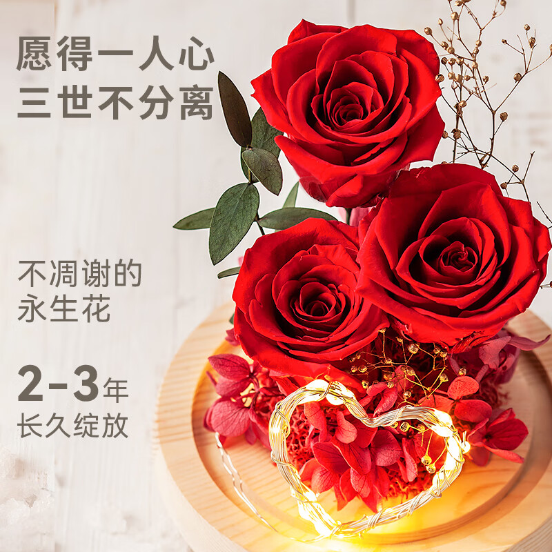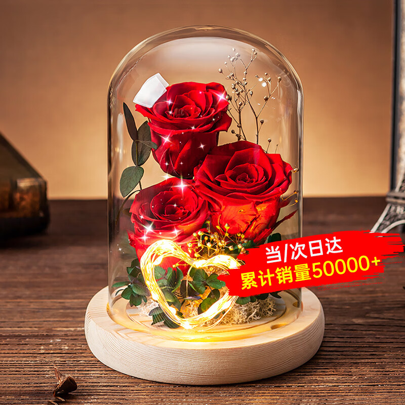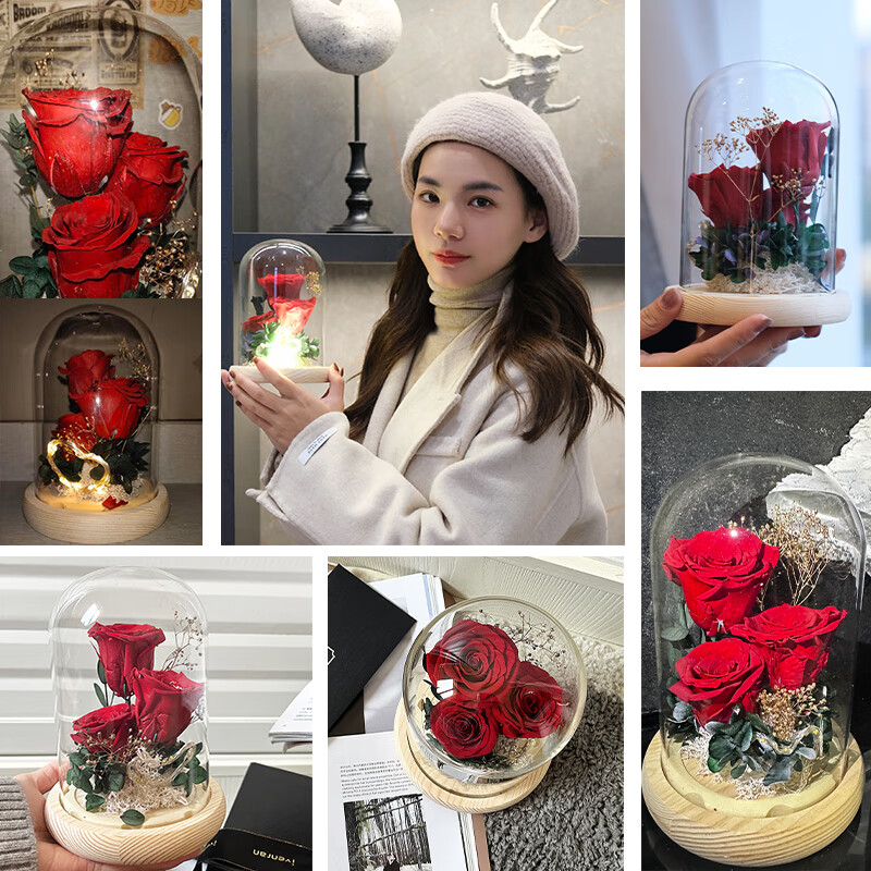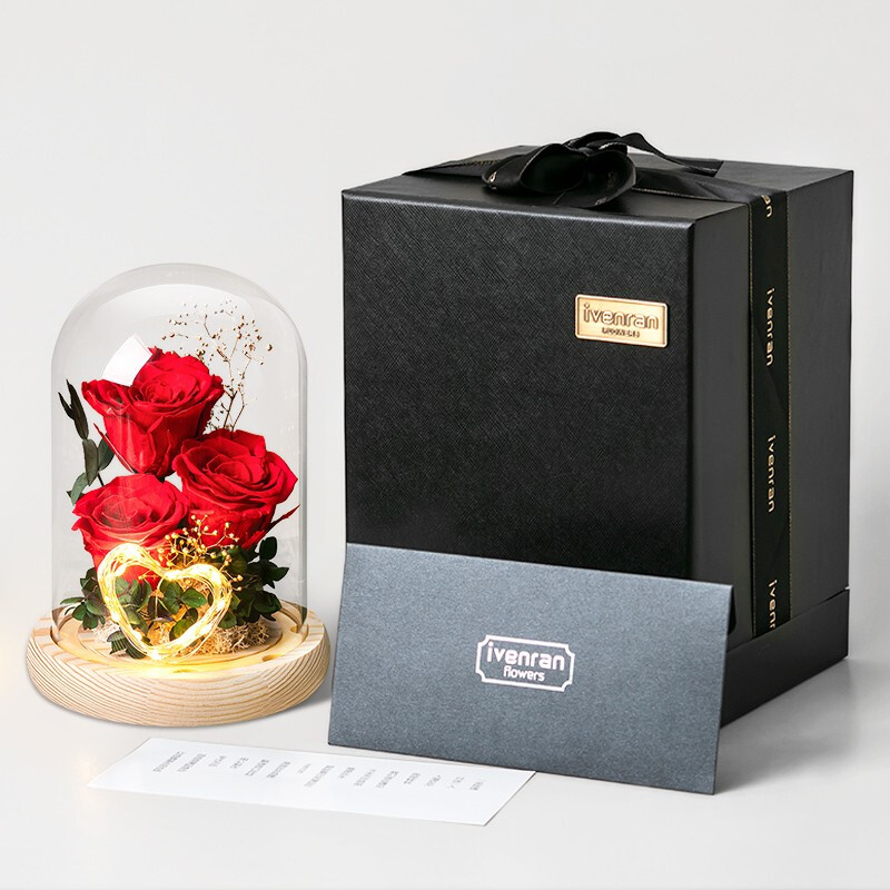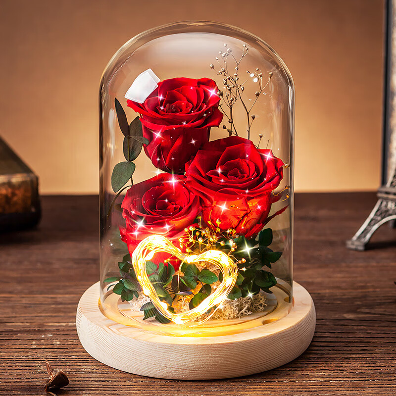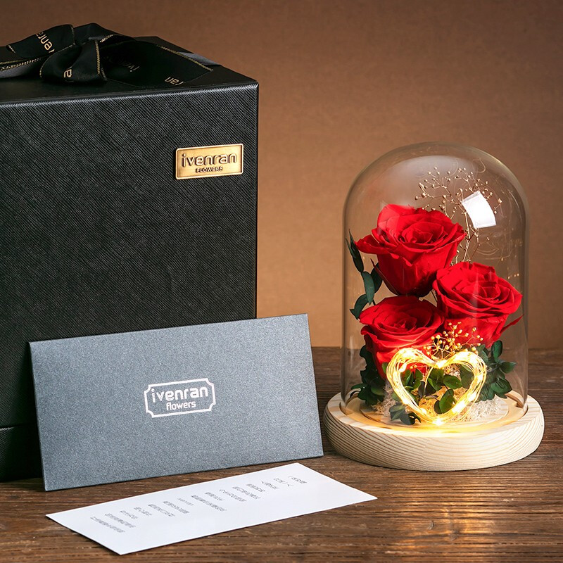依雯然(Ivenran)永生花生日礼物女送女友玫瑰花玻璃罩结婚纪念日高档教师节礼物