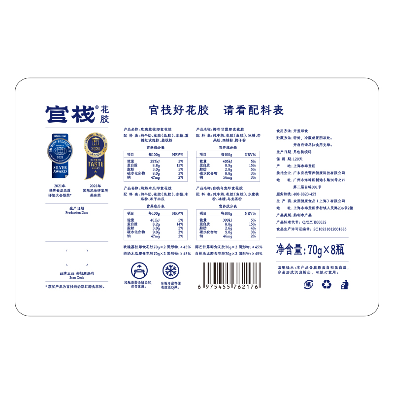 官栈营养纯牛乳鲜炖花胶90g*6 (顺丰冷链 下单鲜炖)