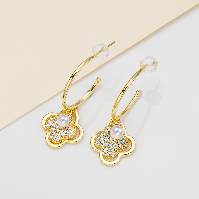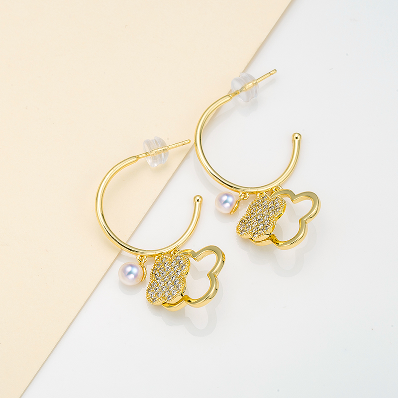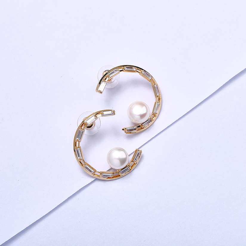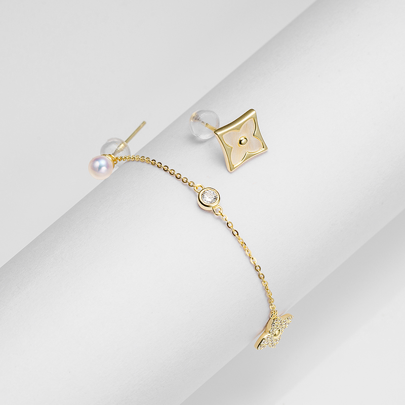OLIVEIRA奥利维拉 珍珠耳饰3541合金镀18K金